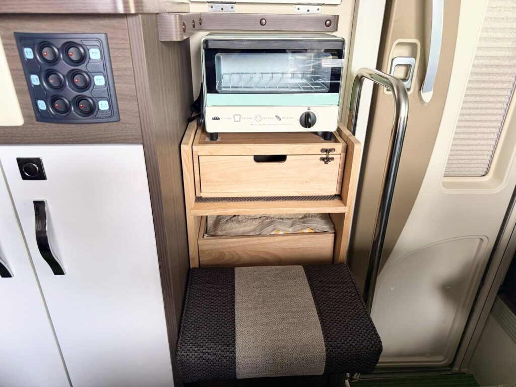 トースターの安定性も 今の所 グラつきや振動音もなく すっかりキャンピングカーの一部になりつつあります