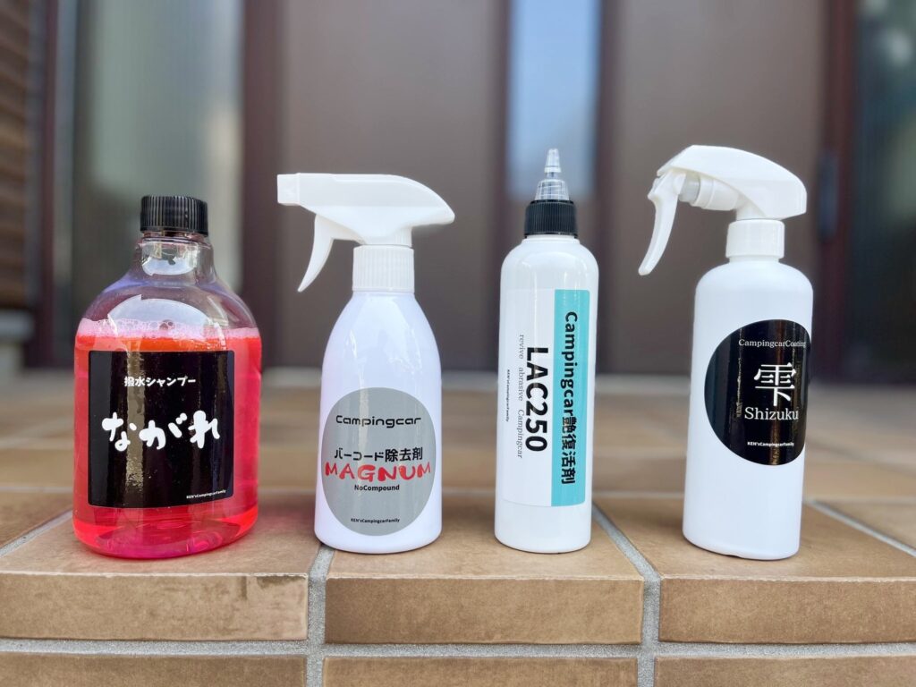 キャンピングカーのお困り汚れ バーコードに効く洗剤やシャンプーなど一式購入