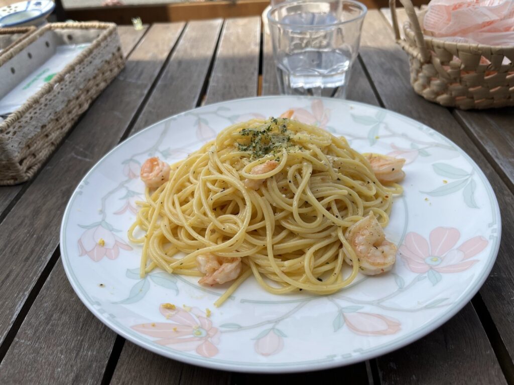 瀬戸田は国産レモン発祥の地 ということで エビのレモンペッパー風味のパスタを注文