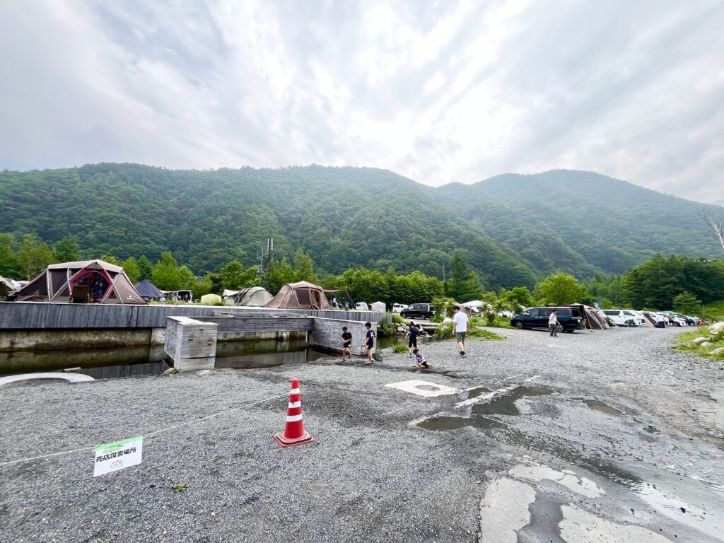 子供たちが遊べる水辺や 売店やトイレや洗い場も近く 利便性が高いサイトですが 土日祝や学校が休みの期間は車が多く 大きなキャンピングカーは 駐車が厳しい事もあります