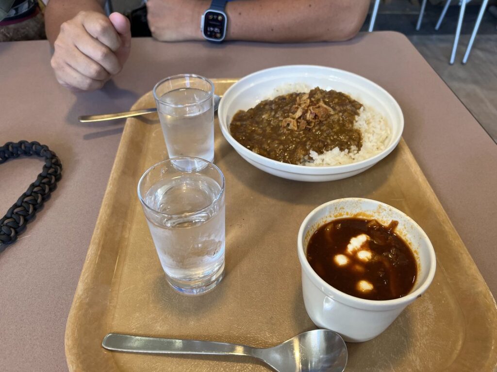 アキはカレーセット エコは 後で朝買わなかったマフィンを食べたかったので 軽めにスープのみ