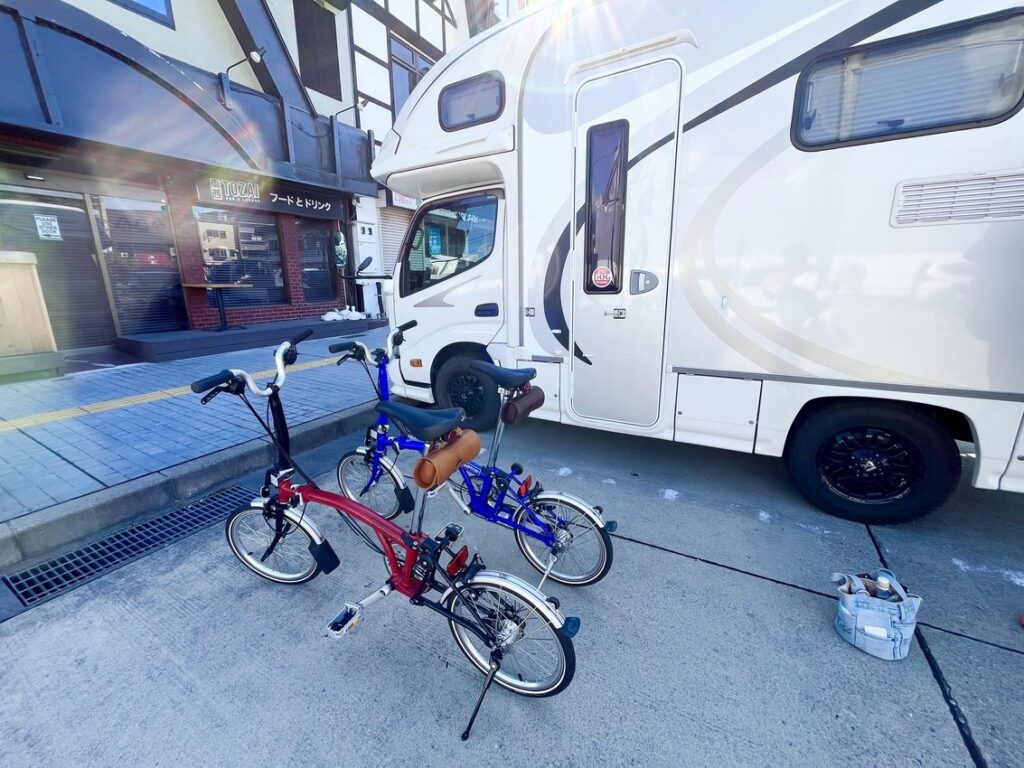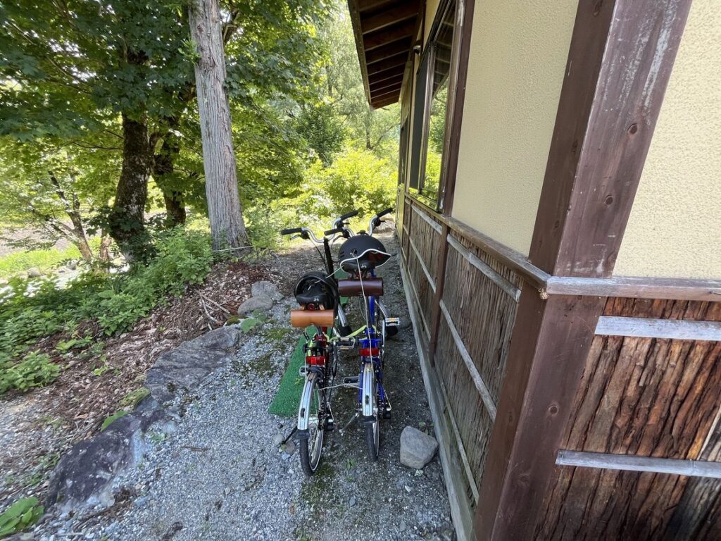 今回はミニベロだったので 駐輪場を探すも見つからず 吊り橋そばのお店に聞いた所 お店の方のご好意でお店の横に停めさせて頂きました