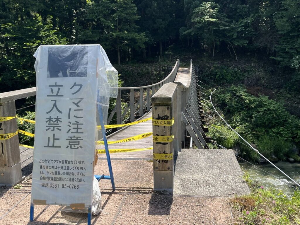 水車小屋があったり 小川に入って涼んだり 人も少なくてのんびりお散歩を満喫していると途中で 「熊注意⚠️」の看板 立ち入り禁止になっていたのでゆっくりと戻ります