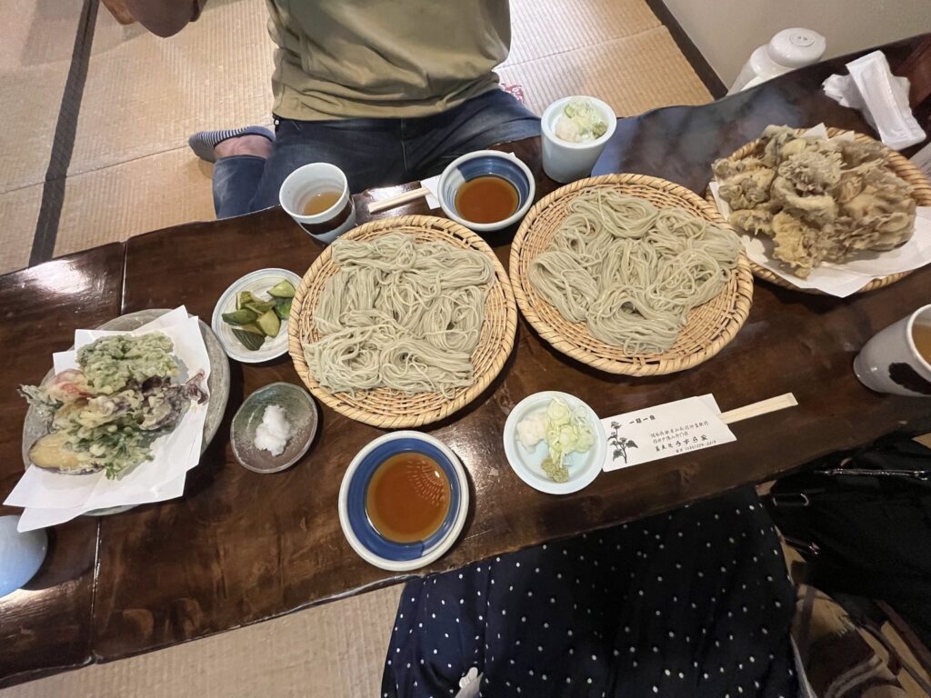 大盛り蕎麦2つと天ぷら(野菜盛り合わせときのこの盛り合わせ)を注文