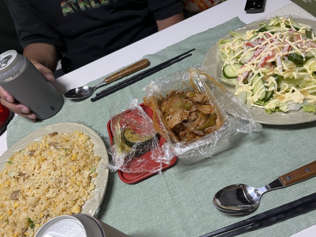 冷食や家から持参したおかずなどでの夕食 お昼ががっつりだったので 気持ち軽め?笑