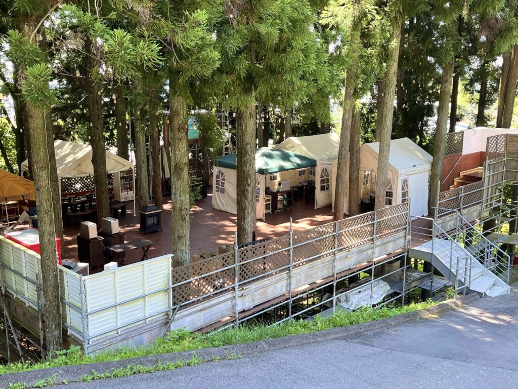 店内はペットNG ですが店舗横 林の中にグランピングのようなテラス席があり こちらはペットOK (席料1人1,000円)