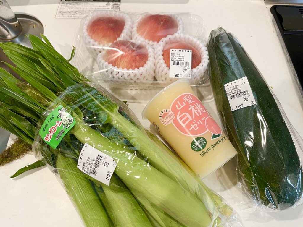 帰宅後のお楽しみは 道の駅で買った果物🍑と野菜たち